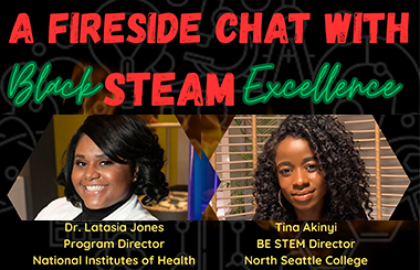The conversation featured Dr. Latasia Jones, Program Director, National Institutes of Health, and Tina Akinyi, BE STEM Director, North Seattle College.